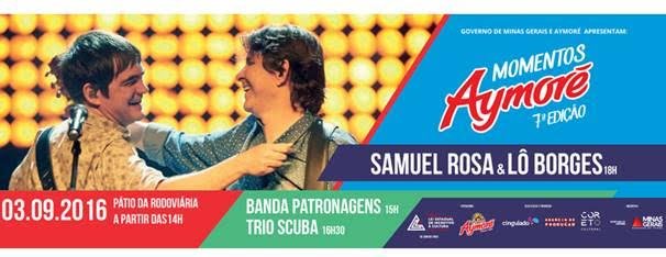 A cidade de Pouso Alegre, no Sul de Minas Gerais, foi escolhida para sediar o último evento do ano do Programa Cultural “Momentos Aymoré”. No sábado, 3 de setembro, a partir das 15h, o Pátio da Rodoviária será palco para os shows gratuitos da Patronagens Band, o Trio Scuba e o encontro de dois grandes artistas: Samuel Rosa e Lô Borges.