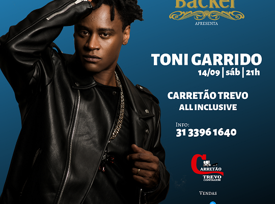 O cantor Toni Garrido desembarca em Contagem para única apresentação. O show acontece no dia 14 de setembro, sábado, às 21h, no Carretão Trevo (Av. Colúmbia, 960 – Novo Riacho, Contagem), onde subirá ao palco acompanhado pelo DJ Danny Dee e a sua banda, composta por Ronaldo Silva (percussão), Fabio Ferreira (baixo), Alexandre Meireles (teclado) e Leonardo Vieira (guitarra). O evento é realizado pelo Carretão Trevo com a produção geral da Horta Produções e Eventos.