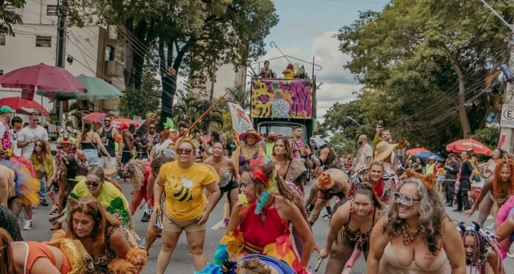 A chuva que caiu sobre Belo Horizonte neste domingo (8) não foi suficiente para esfriar a temperatura na Avenida Assis Chateaubriand. Em seu segundo desfile oficial, o Bloco Salada de Frutas confirmou sua vocação para grandes espetáculos, arrastando milhares de foliões pelo bairro Floresta. Com o tema “Frutas Selvagens: há uma alegria selvagem em estar vivo”, o cortejo foi marcado por um clima de comunhão, resistência e performances artísticas.
