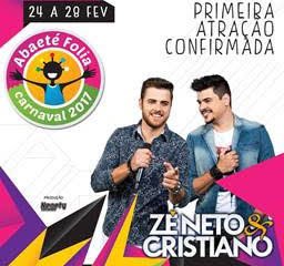 Abaeté Folia 2017 anuncia Zé Neto & Cristiano como sua primeira atração
